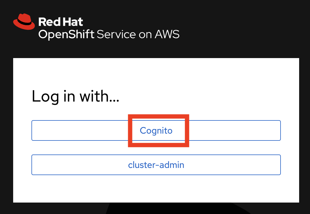 ROSA offers optional integreation with Amazon Cognito, an identity platform for web and mobile apps. Click Cognito.