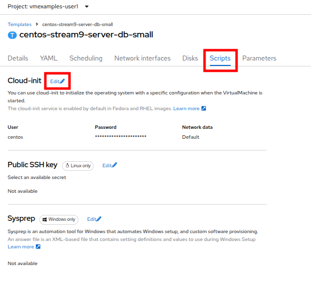 Next click on the Scripts tab at the top, and in the section called Cloud-init click the Edit button.