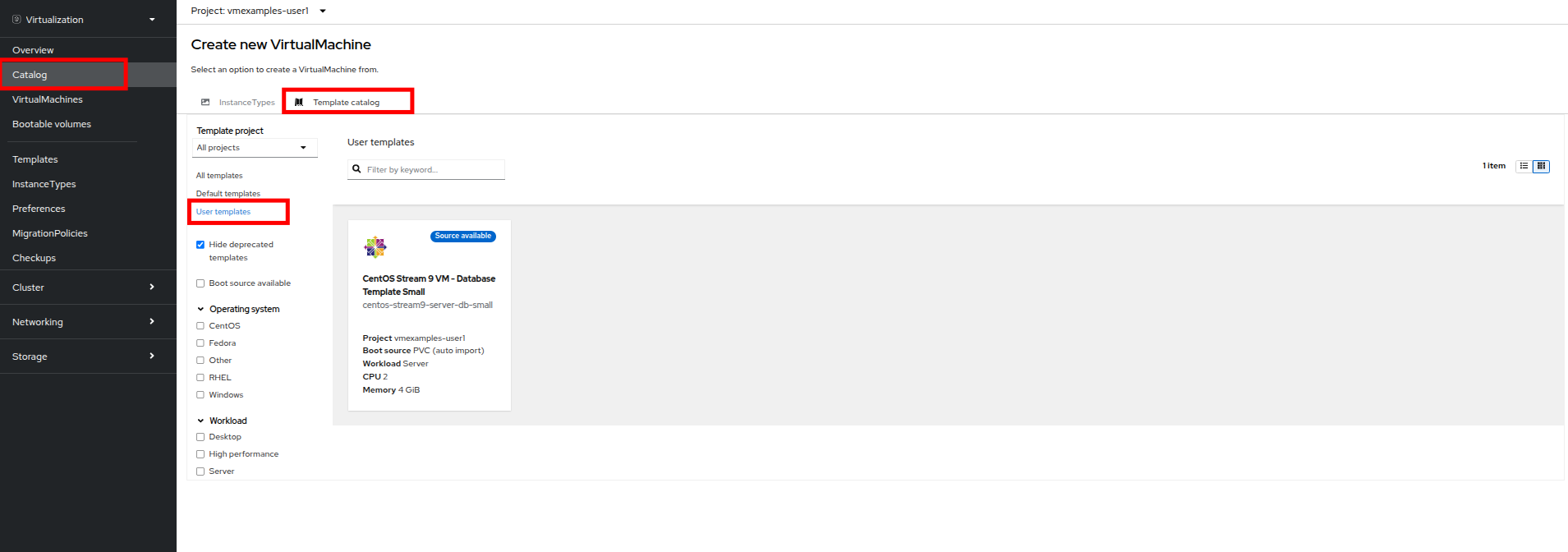 In this section we learned how to clone and customize an existing template to create one that can be used for specific workloads like databases. We also learned how to configure one of the existing Windows templates that exists without a boot source, and automate it’s installation process, so we can create future deployments easily by cloning the installation PVC that was created with that VM. We also introduced how to make use of instance types to further customize our virtual machines for specific workloads for a more cloud-like experience.