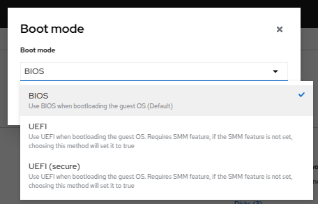 On the Customize and create VirtualMachine screen, click on the edit pencil by the Boot mode option.